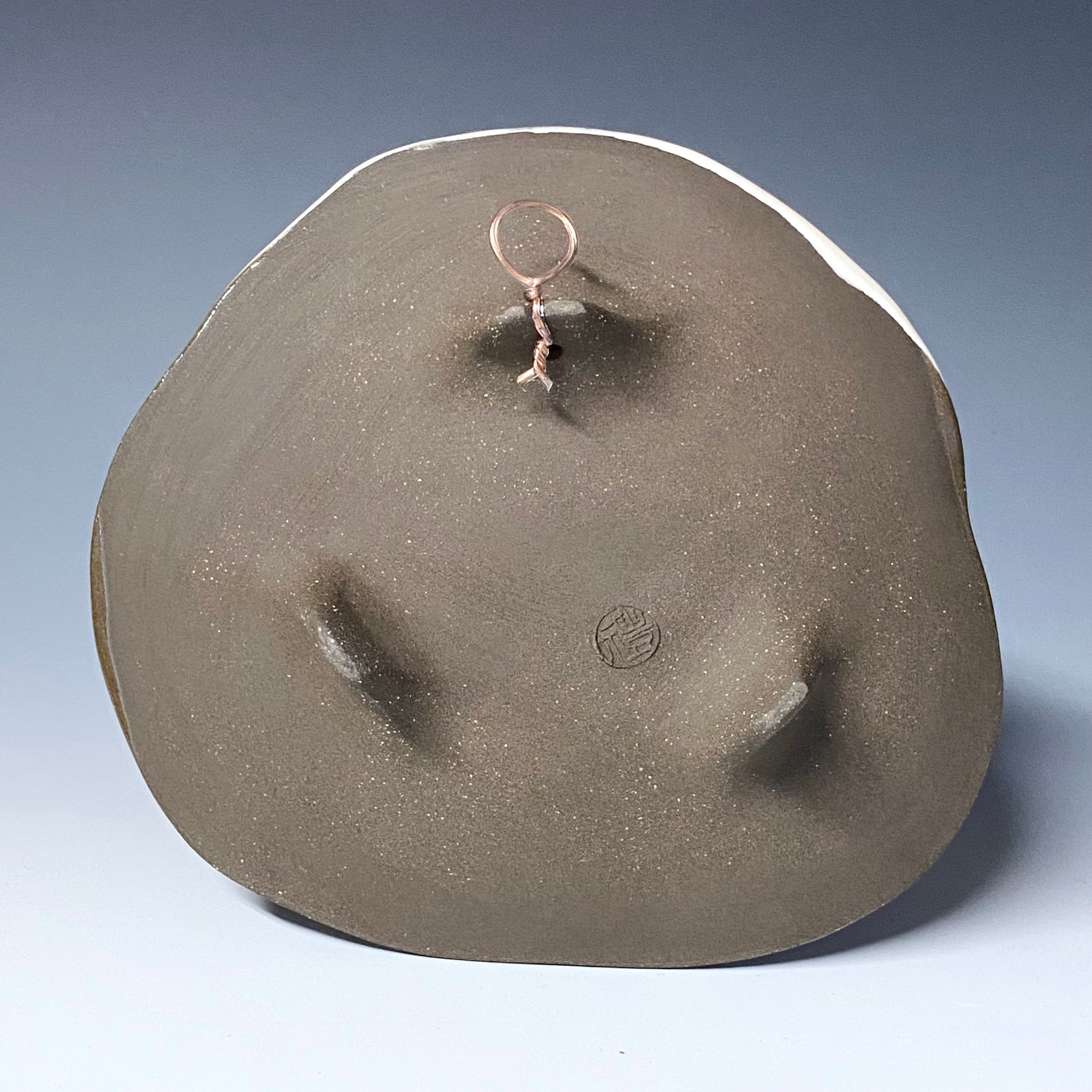 Brown stoneware with white slip, black underglaze, glaze stain, line inlay, and sgraffito decoration.