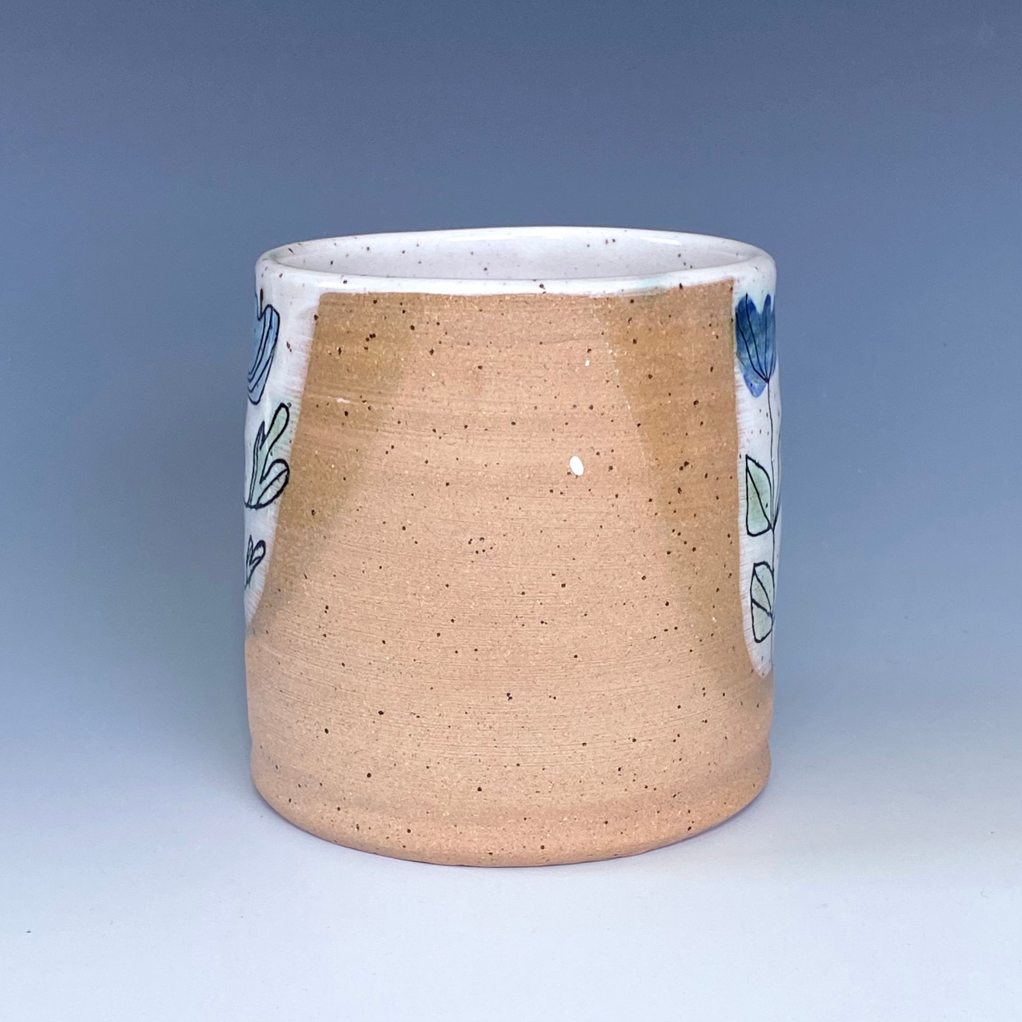Red stoneware with white slip, color glaze, sgraffito and line inlay decoration.