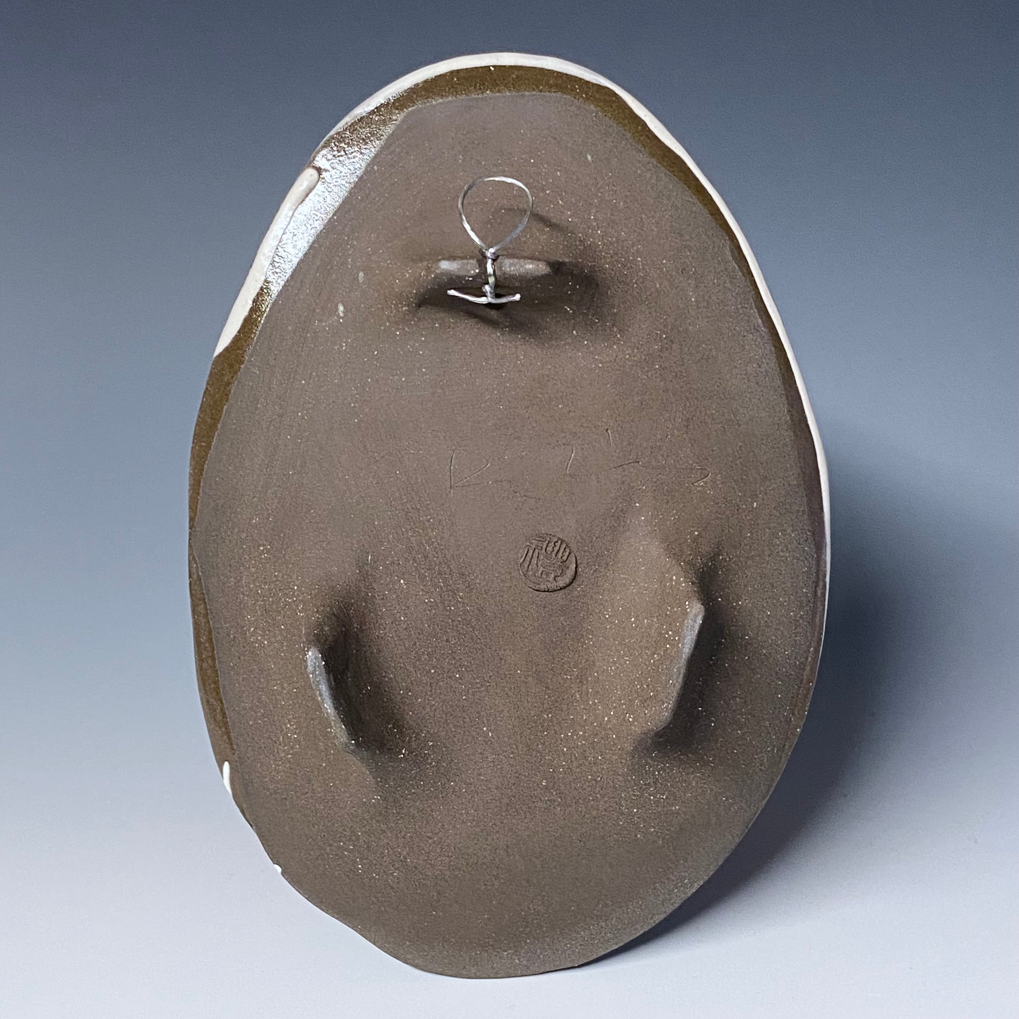Brown stoneware with white slip, black underglaze, glaze stain, line inlay, and sgraffito decoration.