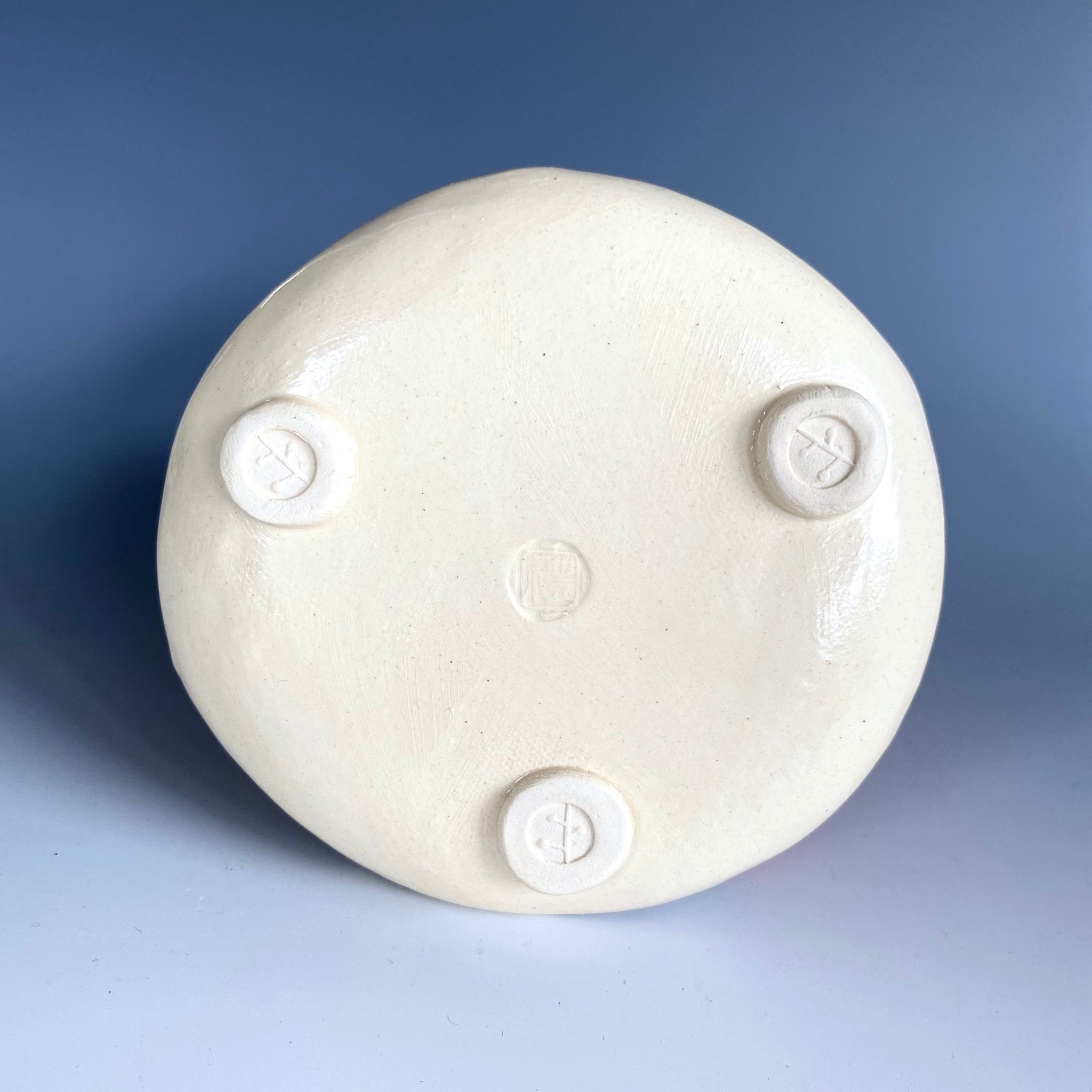 White stoneware with black underglaze, color glaze, sgraffito and gold luster decoration. With lead-free glaze is fully functional ware. Dishwasher safe but due to the metallic luster it must not be microwaved.