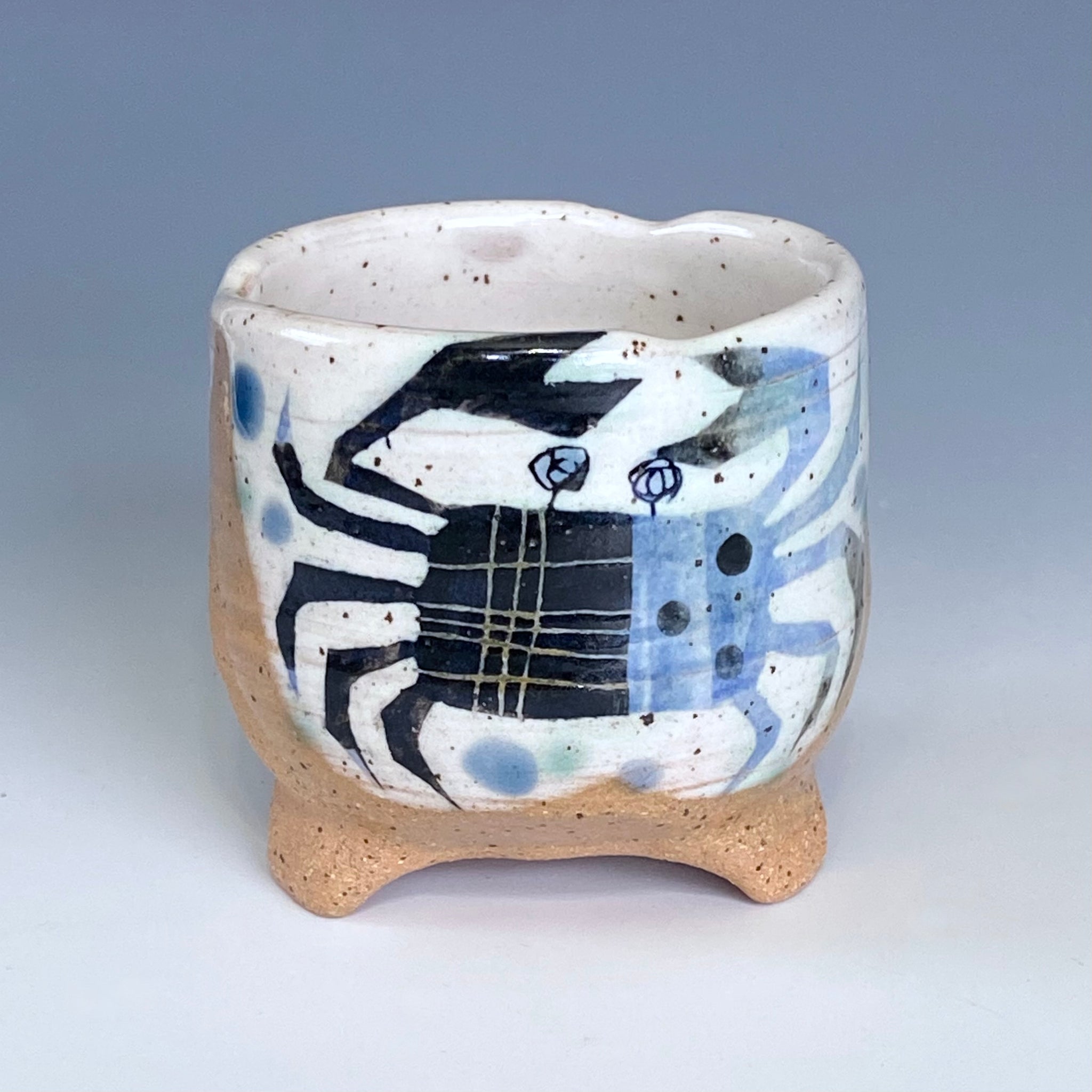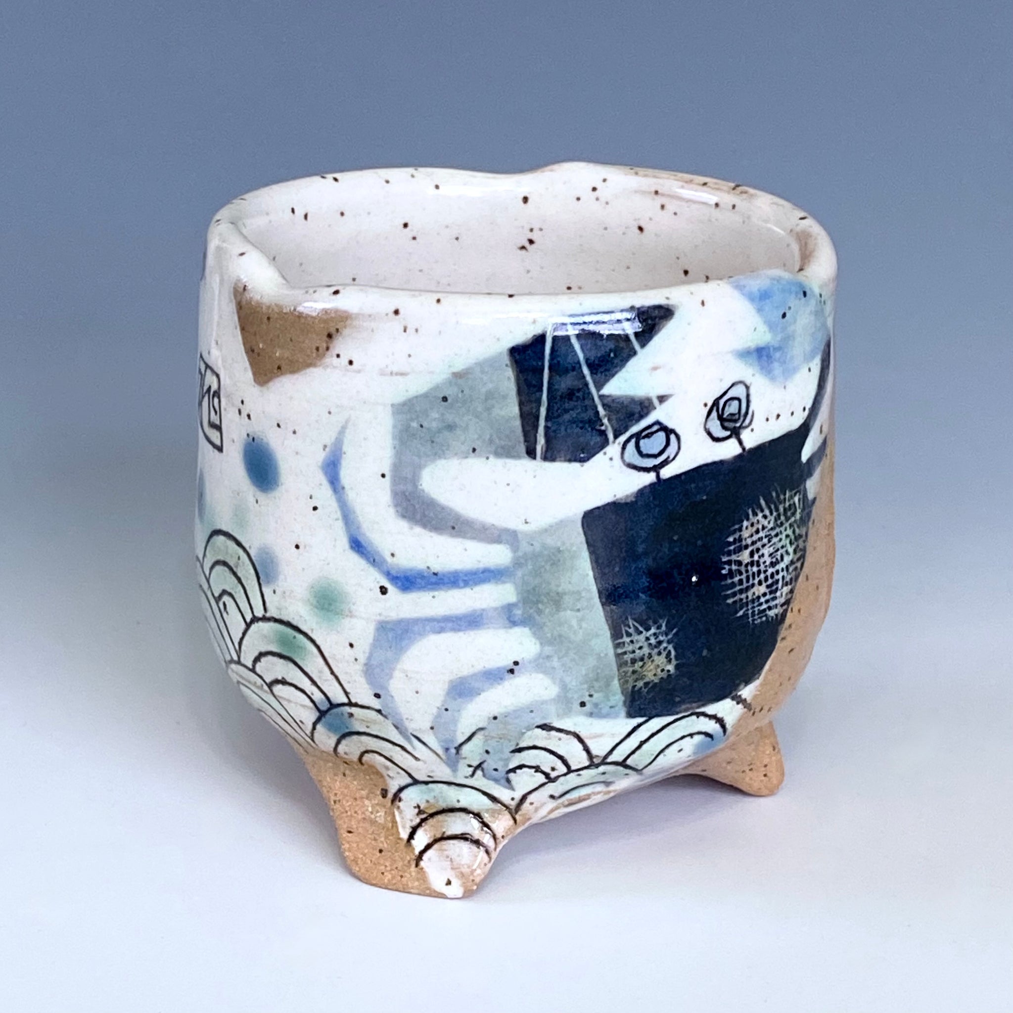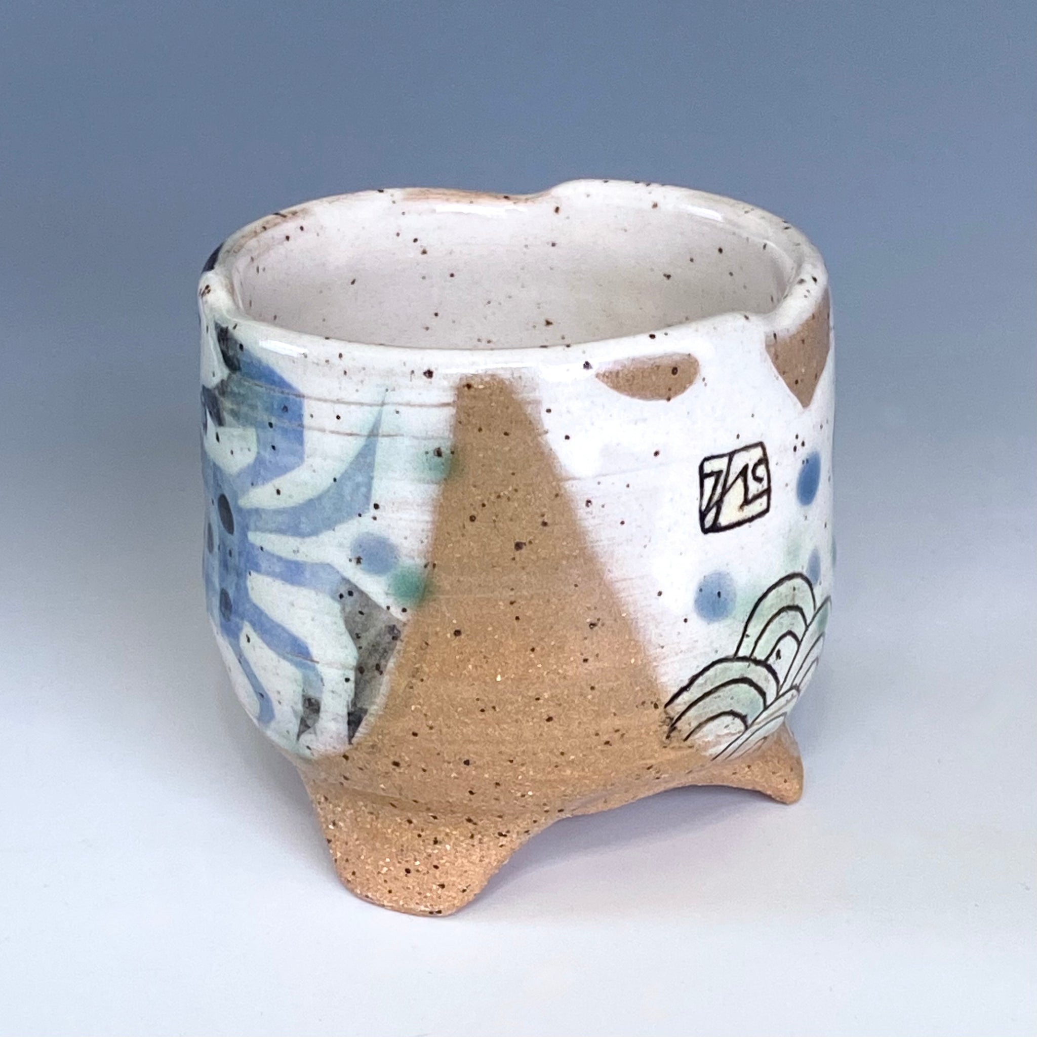 Red stoneware with white slip, black underglaze, color glaze, sgraffito and line-inlay decoration.