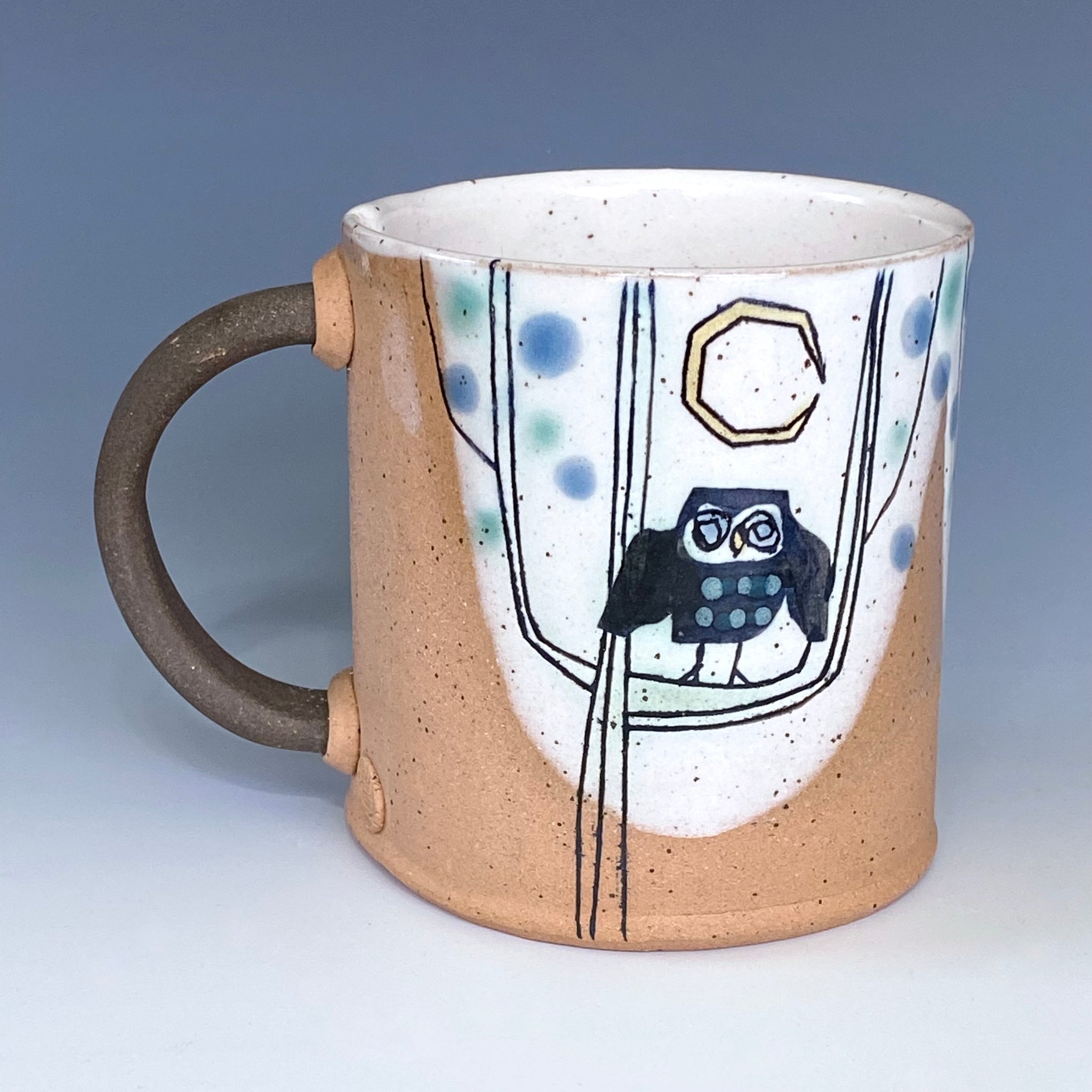 Red stoneware with white slip, color glaze, sgraffito and line inlay decoration.